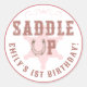 Ajoutez un flair occidental à l’anniversaire de votre petite cowgirl avec ces autocollants de badge Saddle Up rose sheriff ! Parfait pour sceller des sacs de faveur, décorer des tasses de fête ou personnaliser des enveloppes pour un 1er anniversaire, un rodéo ou un poney sur le thème de la campagne.