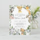 Invitation votre invité avec notre invitation à baby shower d'animaux safari élégant et moderne comprend des gares d'eucalyptus vertes et animaux safari aquarelle. Personnalisez avec vos détails de baby shower dans une mise en page simple et élégante police de style manuscrite.
