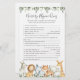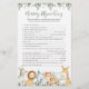 Safari animaux thème baby shower pépinière rime quiz carte de jeu comprend une aquarelle safari animaux illustration et aquarelle verte guirlande eucalyptus et élégante police manuscrite.