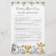 Safari animaux thème baby shower pépinière rime quiz carte de jeu comprend une aquarelle safari animaux illustration et aquarelle verte guirlande eucalyptus et élégante police manuscrite.