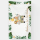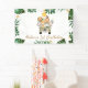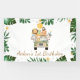 Safari Animaux Balloon Jaune Anniversaire Bannière mignonne principalement vert et jaune safari thème garçons bannière d'anniversaire avec un camion plein d'animaux de la jungle, un feuillage, un ballon jaune, fleurs frangipaniers.