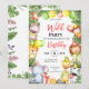 Invitation les amis de votre petit-fils à une fête d'anniversaire délicieuse avec ces invitations de fête d'enfant charmant! Ces invitations comportent une bordure magnifiquement conçue de feuilles verts, d'adorables animaux sauvages portant chacun des casquettes festifs, et tenant des cadeaux ou des ballons dans un style aquarelle. Ce design amusant ajoute une touche fantaisiste qui séduira petits et grands. Customisez facilement les détails de la fête de votre enfant pour répondre à vos besoins. Alors, allez-y et commandez les invitations à la fête de ces enfants aujourd'hui et préparez le terrain pour une fête inoubliable !