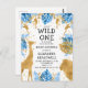 Safari Boy Baby shower Blue Gold Invitation