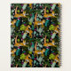 Une jolie illustration dessinée à la main d'un tigre de jungle tropicale dans une jungle botanique avec des fleurs exotiques, des feuilles, des palmiers et des fleurs sauvages. Cette décoration à thème safari tropical avec tigre a un arrière - plan noir qui crée une scène sombre. Un design idéal pour les amateurs d'animaux sauvages, d'illustrations de tigres et de thèmes tropicaux. Customisez ce design de tigre tropical et faites-le vous-même !