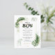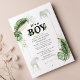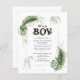 girafe à thème de forêt sauvage, et élégante invitation de baby shower animal safari garçons avec une girafe, un éléphant, feuille d'or et feuilles verts. Idéal pour les invitations de douches pour bébé d'un garçon