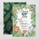 Safari baby shower invite featuring adorable jungle animals and lush greenery creates a fun and lively celebration theme. The playful baby animals combined with tropical leaves bring a fresh and cheerful atmosphere perfect for welcoming a new baby. Ideal for jungle-themed baby showers, gender-neutral celebrations, or outdoor parties. The framed layout keeps your event details clear while adding a decorative and engaging touch. Perfect for parents who love cute animal designs with a vibrant and natural style.