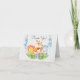 De mignons animaux de la jungle safari avec un éléphant, un lion, un singe et une girafe avec un assortiment de feuilles de jungle sur un arrière - plan de burlap blanc. Visitez notre boutique pour voir toute notre collection de baby showers safari dans la jungle !