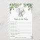 Safari Jungle Elephant Baby shower Jeu IMPRIMÉ Voeux pour la carte bébé
