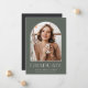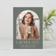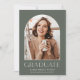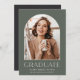 Élégant faire-part de graduation de photo comporte une photo verticale ou portrait orientée dans une disposition unique voûtée, sur un arrière - plan vert sauge foncé. "Graduate" apparaît ci-dessous, ainsi que le nom de votre diplômé et l'école ou le collège. Ajoutez un message personnel à l'arrière, ainsi qu'une photo supplémentaire.
