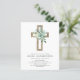 Sage Green Boy or Girl Eucalyptus and Gold Foil Botanical Greenery Aquarelle Christian Baptême Religieux Invitations.