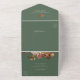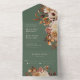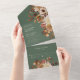 Sage Floral Mariage All in One Invitation. Cette élégante faire-part de mariage tout-en-un présente des feuilles d'aquarelle peints à la main, orange brûlé et terre cuite, des dahlias crème et beige, et de beaux roses de couleur rouille sur un arrière - plan vert sage. RSVP est inclus avec cet invitation élégant. Trouvez les articles correspondants dans la collection Sage Green Autumn Romance.