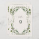 Aidez vos invités à trouver leur table avec notre carte d'affichage de numéro de table de réception avec un étonnant mélange de polices de caractères lettrées et classiques avec des éléments de jardin botanique vert sauge. Cet article fait partie de notre collection de mariages Tieghan T100, s'il vous plaît magasiner notre magasin pour la coordination des articles.