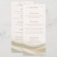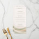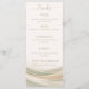 Inspired by 2026’s trending nature-inspired palette, this design features flowing abstract waves in soft sage green and creamy ivory. The layered movement evokes the drapery-inspired aesthetic of gathered fabric backdrops and statement reception décor. The clean, modern layout keeps all menu details easy to read while the elegant artwork adds depth, motion, and sophistication to your tablescape.