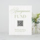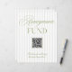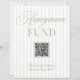 A modern honeymoon fund sign featuring soft beige vertical stripes paired with refined sage green typography. Designed with a clean layout and integrated QR code, it offers a simple and elegant way for guests to contribute to your honeymoon.