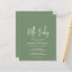 Baby shower moderne sauge verte budget invitation avec un design simple avec "Hello Baby" dans une élégante typographie de script et les détails de votre événement dans une police sans serif minimaliste. Cette invitation chic est neutre du point de vue du sexe, ce qui en fait un lieu idéal pour avoir un bébé ou une petite fille.