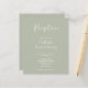 Le prospectus de la réception de mariage présente un design typographique élégant, moderne et propre avec des couleurs vert sage. Ce dépliant de réception vous permet de customiser avec les détails de votre journée spéciale.
