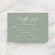 Parfaites pour un mariage moderne, ces cartes RSVP calligraphie présentent un script élégant sur un arrière - plan vert sage, ainsi que l'option permettant aux clients de choisir leur choix de repas.