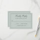Simple et élégante, cette carte classique de mariage RSVP a une fine bordure sur un arrière - plan vert sage. Personnalisez la date RSVP avec la date de réponse requise. Cette carte est disponible dans une variété de modèles de couleurs préfabriqués. Vous pouvez également modifier la couleur arrière - plan en fonction de la couleur de votre choix. Si vous décidez de modifier la couleur de l'arrière - plan, veillez à modifier la couleur à l'avant et à l'arrière de la carte.