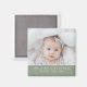 Cet aimant frigo est doté d'une police de style contemporain "Hello, Baby" au bord inférieur de votre propre photo bébé au-dessus d'un arrière - plan vert sage avec le nom et la date de naissance de votre bébé dans une police blanche et nette moderne. ,