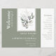 Un programme de mariage élégant à deux côtés, plat - vert sauge et blanc en couleur avec de beaux feuilles d'eucalyptus qui est facile à mettre à jour.