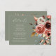 Partagez facilement des détails mariages importants grâce à cette élégante carte verte à la sauge, dotée d'un magnifique bouquet floral à l'aquarelle dans des tons chauds et terreux. Parfait pour inclure des informations sur les lieux, les hébergements ou votre site Internet mariage, cette carte ajoute une touche romantique et cohésive à votre suite de papeterie. Customisez facilement pour convenir à votre fête.