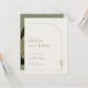 This invitation beautifully blends minimalist elegance with a warm bohemian vibe. The back features a prominent arch-shaped photo slot for you to showcase your favorite couple's picture, set against a calming sage green background with delicate white line-art arches.