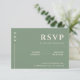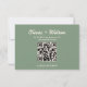 Carte de boîtier RSVP Sage Green Mariage QR Code | Elegant Greenery Digital Reply Simplifiez votre planification mariage avec notre élégante carte de boîtier RSVP Sage Green Mariage QR Code ! Cette carte chic présente de beaux accents verts sauge, ajoutant une touche sereine et sophistiquée à votre suite mariage. L'inclusion d'un code QR offre à vos invités un moyen pratique et moderne de numériquement RSVP, rendant le processus de réponse facile pour tout le monde. Cette carte RSVP verdoyante est parfaite pour les couples qui apprécient à la fois l'élégance classique et l'efficacité moderne. Les tons vert sauge apaisants et les délicates illustrations botaniques évoquent des jardins luxuriants et une esthétique intemporelle, idéale pour les mariages de jardin, rustiques ou contemporains. En dirigeant les invités vers votre site Web mariage ou un formulaire RSVP en ligne dédié via le code QR, vous simplifierez le suivi des réponses et rassemblerez tous les détails nécessaires en toute transparence. Customisez facilement cette carte de boîtier RSVP de code QR avec l'URL de votre site mariage et toutes les instructions spécifiques pour vos invités. Vous pouvez personnaliser les polices et la mise en page pour correspondre parfaitement à vos invitations de mariage principales. Imprimée sur un carton de haute qualité, cette carte complètera votre suite papeterie avec beauté. Coordonner ces belles cartes de boîtier Sage Green Mariage QR Code RSVP Endoor Cards avec vos principales invitations, cartes de remerciement, et autres papeteries mariages pour une célébration parfaitement cohésive et mémorable. Cliquez sur "Customiser maintenant" pour personnaliser votre carte de boîtier Sage Green Mariage QR Code RSVP et simplifier votre gestion des invités mariages! sage vert QR RSVP, élégante carte de réponse verte, mariage numérique RSVP, mariage de code QR personnalisé, boîtier vert moderne, mariage botanique RSVP, carte verte rustique sage, mariage RSVP en ligne, papeterie mariage verte, code QR mariage réponse