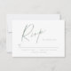 Design minimaliste de script Rsvp moderne en vert et blanc sauge, simple et élégant. grandes cartes rsvp mariage pour mariage moderne et autres événements. Voir toutes les pièces correspondantes dans la collection.
