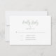 Ce botanique fleur sauvage RSVP vert et blanc sauge est élégant et simple. L'avant est minime avec la typographie de script. Le dos présente la même floraison délicate mais audacieuse présentée sur votre invitation.