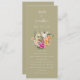 Ajoutez une touche de grâce à votre cérémonie grâce à ce programme de mariage floral au printemps vert sauge. Doté d'une illustration de bouquet en fleurs et d'un élégant script blanc, ce programme recto verso décrit les détails de votre cérémonie et de votre mariage dans le style. Entièrement personnalisable pour s'adapter à votre célébration mariage.