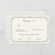 This sage green RSVP card adds a soft and polished touch to your wedding suite. The striped background brings a fresh and tailored look, while the delicate outlined frame keeps your guest details organized in a clean and elegant layout. It pairs beautifully with classic, garden, and minimalist wedding themes. Every element can be personalized, including the stripe background color, text, and layout, allowing you to match it perfectly with your invitation and overall wedding palette.