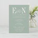 Sage Green & White Mariage élégant. Élégant texte blanc sur sauge arrière - plan vert eucalyptus. Caractéristiques magnifiques paraphes personnalisables mariée et marié monogramme avec l'ampersand. Personnalisez avec vos initiales Monogram et le texte mariage. Nous vous invitations à visiter notre magasin Zazzle, GJ Design Co, pour voir les produits correspondants