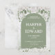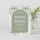 Cette élégante invitation à un mariage présente un arrière - plan élégant vert sauge orné de fleurs blanches douces, créant une esthétique botanique minimaliste et fraîche. Parfait pour les mariages de jardin, de plein air, rustiques et de nature. Ce design apporte une touche de beauté naturelle et d'élégance intemporelle à votre journée spéciale.
