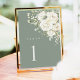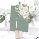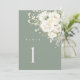 Sage Green White Floral Wedding Table Number Card