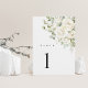 This sage green and white floral table number features soft watercolor roses and airy botanical greenery, designed for elegant, modern classic wedding receptions. The clean layout and balanced typography ensure excellent readability while adding a refined decorative touch to guest tables.
