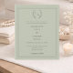 A sage green colored background decorated with a hand drawn crest. Warm taupe colored frames and text. Personalize and your monogram initials, names and details.