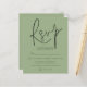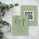 Sage Mariage de code QR du script budgétaire RSVP. Un prix économique PETIT 4,5 po x 5,6 po alternatif. Disponible dans un STOCK SEMI-GLOSS 110 lb CARD qui est l'option par défaut (plus épais pour les invitations), OU un STOCK SATIN FINISH 80 lb THINNER PAPER (idéal pour les boîtiers). Les enveloppes sont en option et légèrement plus grandes que la taille de la carte. Votre code QR du site Web mariage est au verso, il suffit de remplacer l'exemple de code. Une typographie stylisée en noir pour le titre principal RSVP complétant le reste du texte que vous pouvez facilement personnaliser.
