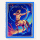 Journal in the Zodiac sign Sagittarius featuring a powerful centaur archer aiming a fiery arrow skyward. Surrounded by stars, the image depicts celestial energy, emphasizing the mythic, adventurous essence of this fire sign.