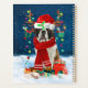 Chien de Saint Bernard en neige avec chapeau de Père Noël et cadeaux de Noël est une idée cadeau de Noël parfait pour quelqu'un qui aime cette race de chien.