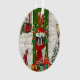Saint Bernard Dog Noël assis à l'extérieur de la maison décorée avec la couronne de Noël, le sapin de Noël est une idée cadeau de Noël parfaite pour les amoureux de les chiens.