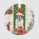 Saint Bernard Dog Noël assis à l'extérieur de la maison décorée avec la couronne de Noël, le sapin de Noël est une idée cadeau de Noël parfaite pour les amoureux de les chiens.