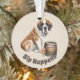 Illustration aquarelle d'un chien Saint Bernard devant un tonneau et un verre. Texte personnalisé des deux côtés.