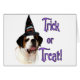 Sera-t-ce des Tricks ou des Traitements pour cet Halloween ? Notre design de vacances a votre race de chien préférée, le Saint Bernard, portant un casquette de sorcière. Ajoutez un peu de "Hocus Pocus" à All Hallows cette année !