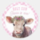 Ajoutez une touche sucrée à vos fêtes, cadeaux ou décors avec cet autocollant rond "Holy Cow I’m One" ! Doté d'une vache aquarelle à couronne florale, d'une bordure rose en vichy et d'un texte ludique de style occidental, il est parfait pour fêter le premier anniversaire d'une fille. Personnalisez avec le nom ou le message de votre enfant pour correspondre à votre thème !