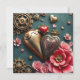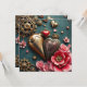 Modèle de photo personnalisé pour la Saint-Valentin dans un style steampunk. Jolies fleurs roses et engrenages métalliques, Le dos comporte trois espaces pour des photos. Vous pouvez également modifier le texte dans la zone de personnalisation.