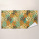 Ce kit de serviettes est doté d'un linge bleu-vert, d'une serviette de bain turquoise et d'une serviette de bain au design moderne du milieu du siècle d'un adaptateur de disque qui se superpose partout dans le bronze, le blanc cassé, le marron, l'orange, le turquoise, le bleu et le vert.