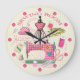 Obtenez couture avec cette horloge murale élégante de la salle de couture. Cette horloge amusante salle de couture a un thème de couture avec divers équipements de couture, y compris une machine à coudre, aiguille et fil, ruban à mesurer, fils de coton et autres articles de couture, et à la place des chiffres, il a de mignons boutons roses autour du visage! Cette horloge de la salle de couture aura l'air fabuleux dans votre salle de couture et garder le temps parfait! Il fait aussi un grand cadeau ! Ce design de salle à coudre est également présenté sur d'autres grands produits dans le magasin Stand Up and Cheer.