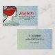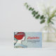 carte de visite moderne damassé avec motif rose et feuille et belle femme aux cheveux rouges avec un design entièrement rétro, de style vintage.