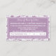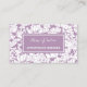 Rappelez aux clients de leur prochain rendez-vous cheveux avec ce rendez-vous de salon floral moderne violet clair girly et blanc rappelant les cartes de visite. Personnalisez en ajoutant le nom de l'esthéticienne certifiée et les informations de rendez-vous à ce joli design de fleurs violettes lavande. Tout le texte de ce modèle de carte de visite peut être customisé avec votre profession ou entreprise de votre choix.
