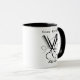 Salon Coiffeur ciseau peigne sèche-cheveux Mug. Mug noir et blanc pour le professionnel du salon. Cute et Unique. Peigne d'ouverture, ciseaux et coiffeur en noir. Un côté a les mots "Snip, style, sourire" et l'autre côté a les mots "créer, couper, couleur". Un cadeau parfait pour le professionnel du salon.